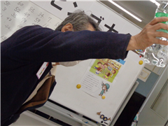 本日、「冬のビンゴ大会」を開催しました。今回のテーマは、「大掃除」。「みなさーん、(カードの)真ん中を空けてOKです。ENTASからの特別サービスです(おじょう)」キャーハハハハハ、サービスって(笑)会場内あたたまってます。そろそろあの方に登場してもらいましょう!!「大掃除中のナオちゃんです」どう見ても(ぐんまちゃん)さんですが(^^;…ENTASのみなさんが、失くしたかるたを見つけてくれると聞いてやって来ました。今回はビンゴに当たった方には、「かるた」の絵札になってもらいます。始まりまーす!!