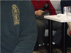 そのあとは、(ぺーちゃん)さん、(ゴマチャン)さんの司会で、カラオケ開始です。みんな久しぶりなので、恐る恐る始まりました。しかし、だんだん調子が出て(がんばりや)さんのGLAYで大盛り上がりです。次々とご披露してくれる人アリアリアリアリ…。その間に、グループ対抗「万歩計フリフリ♪」その名の通り万歩計をフリフリして、一番大きい数字をたたき出したチームの勝ちです。ひとり10秒でバトンタッチ。なんだかとっても燃えているENTAS一同。結果は、「1」ポイント差という僅差。すごい勝負でした!!今日も、全力で楽しみました。