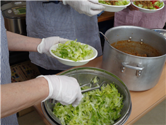 本日、調理会を行いました。メニューは、「タコライス」「野菜&玉子のコンソメスープ」です。